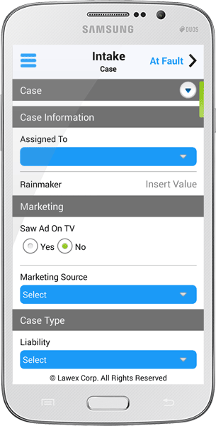 Legal professionals utilize the Customer Acquisition Apps when visiting clients, case venues, crime scenes, and other locations that demands the capture of case / docket information. The customer acquisition process is organized into an intuitive workflow that minimizes the volume of information to be entered into the Apps. This simplifies and expedites the acquisition / onboarding process, and as a result frees up legal practitioners so more time can be devoted to settling and closing cases. A complete audit trail is also maintained of clients’ profiles and changes to cases / dockets, facilitating a complete history of each acquisition.
